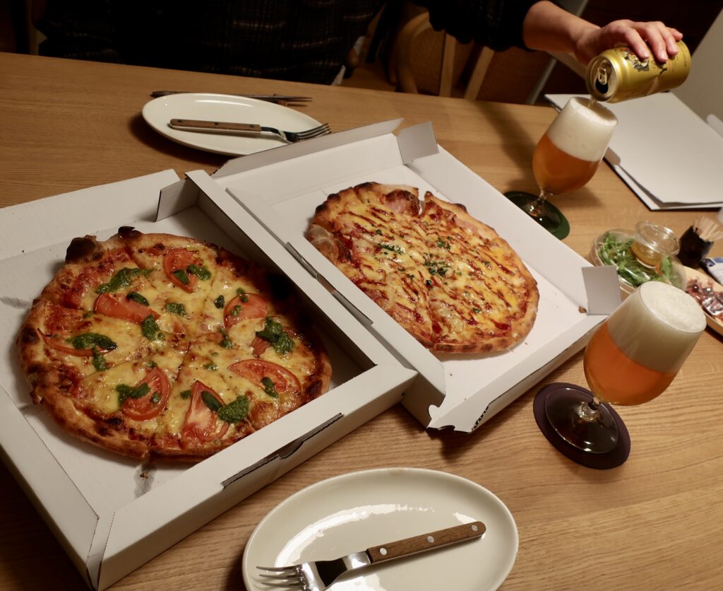 注文して30分ほど経ったころ「これから店を出ます。5分後くらいに届けられると思います。お支払いは現金のみなので、4,200円を用意しておいてください」と電話があった。白状すると、少しワクワクしていたのだ。ピザのデリバリーなんてどれくらいぶりになろうか、見当もつかないくらい昔のことだ。しかも朝からゲレンデに出ていたのでランチは軽く、すでに風呂も済ませてお腹はペコペコ。そう、少しどころかとっても楽しみにしていたのだ。なのに5分はとうに過ぎている…。やっぱり道に迷ってやがる。