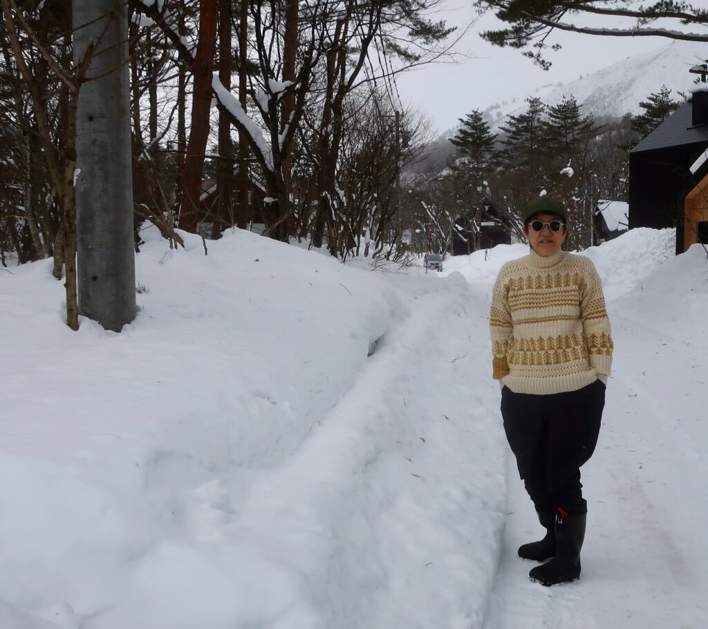 隠居たるもの、毎日難儀なことばかり。すでにつれあいはヌクヌク眠りについている。2026年1月27日午後10時45分、翌日も朝からスキー場に行くつもりだからそろそろ寝床に入ろうという頃合いだ。「さて電気を消そうか」と椅子から立つと、なにやら若者がはしゃぐ声が窓の向こう、庭の方からうっすら聞こえてくる。しかもこちらに近づいているのか、その声が少しずつ大きくなる。疑心暗鬼でロールカーテンを上げてみると、ウッドデッキが切れるほんの少し先、オージーと思しき男女3人組が、膝上までを雪に埋めながら我が庭をキャッキャと横断している。窓を開け「What are you doing!(てめえら、なにしてやがんだ!)」とどやしつけると、最後尾にいた男性が隣の貸しコテージを指し「ここに泊まっているんで」という素ぶりを見せる。「そんなこた知ったことか!Get Out!Get Out!」と畳み掛けると、頭から湯気を出している雷オヤジの剣幕に畏れをなしたのか、3人組はすごすご隣に下りていった。それでは思わず夜の外気に触れて寒さに震えたかというとそんなことはない。怒りで身体がカッカしているからか?そうでもない。つれあいが編み上げたばかりの暖かいカーディガンを羽織っているからだ。