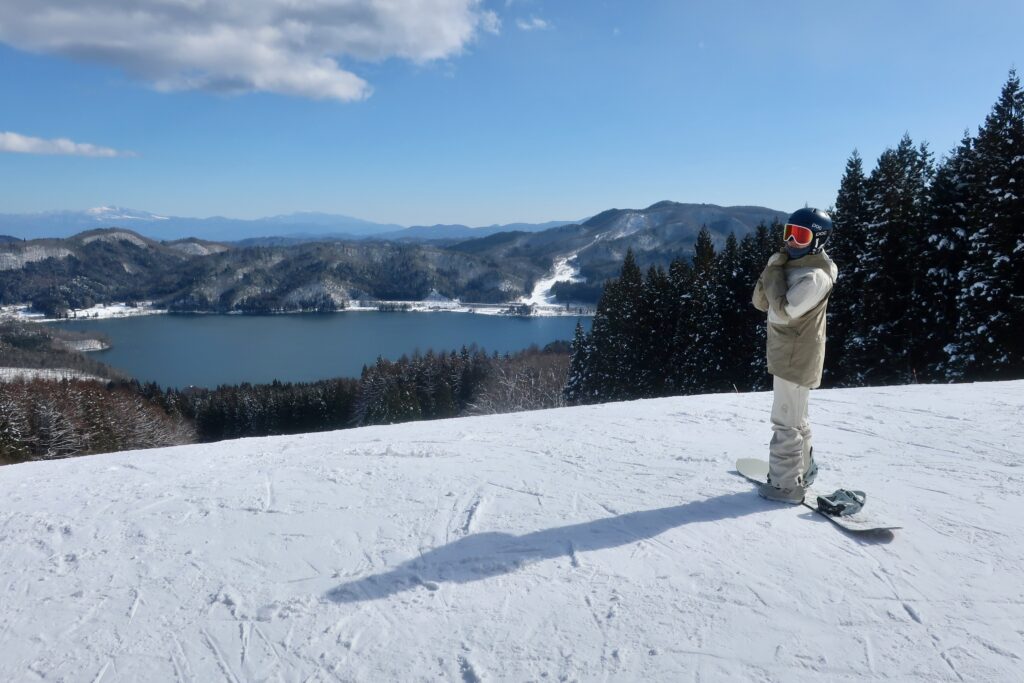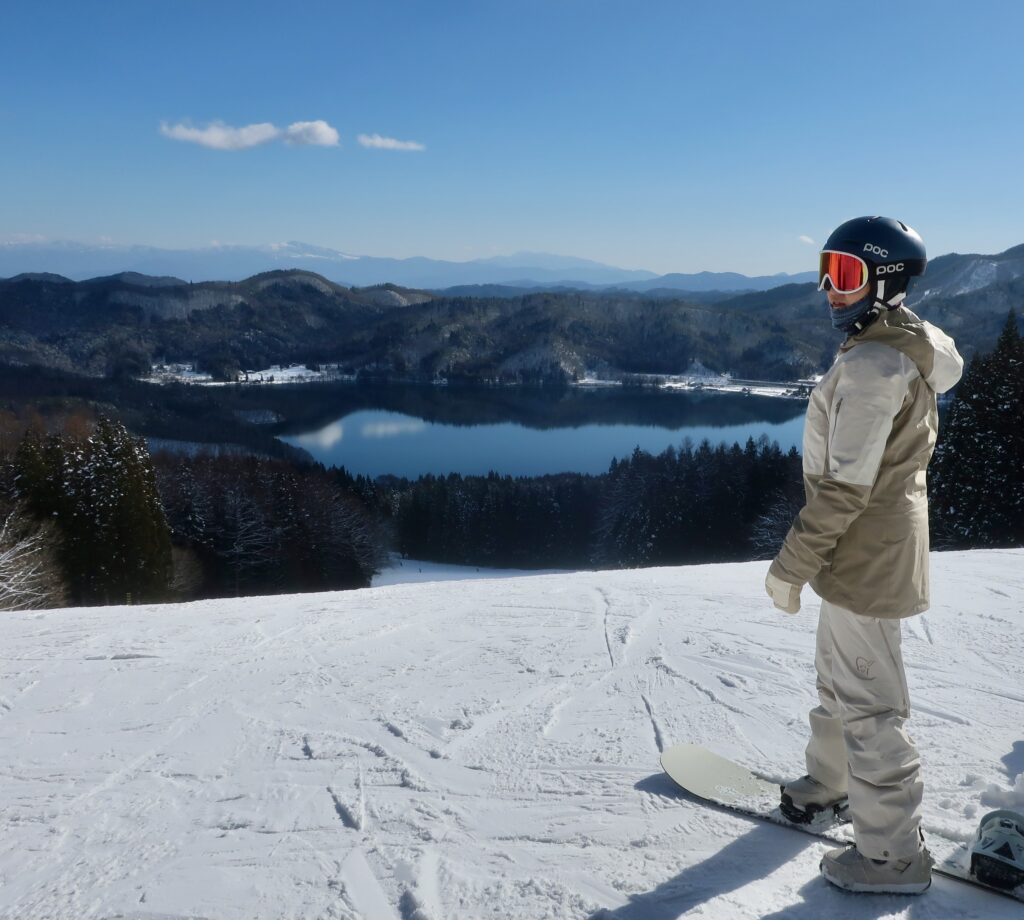 オープン直前のメンテナンス期間にたっぷり足されたばかりのオイルがシーズン開始当初のリフトのケーブルから滴り落ちる、ないことではない。お客さんのウェアを汚した場合に責任回避ができるよう、スキー場も「そんなことがたまにある」とこっそり密やかに注意喚起すらしている。ベージュとオフホワイトを基調とするウェアを新調したつれあいはそれを恐れていた。だからシーズンインと同時にお披露目とはせず、満を持して新年早々に照準を合わせていたわけだ。青木湖を一望するさのさかスキー場、晴れるとなると時々刻々変化する陽光の角度によって湖面に映し出される影も移り変わる。そんなスキー場におニューのウェアが映える。してやったり、「11年間使い倒してあちこち凹んでいるヘルメットをこれに合わせて何色に替えようか」、新年らしくそんな華やいだ心持ちにもなろうともいうものだ。