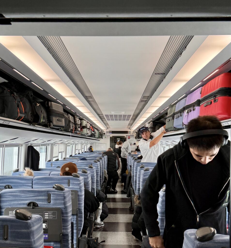 1月3日、朝一番のあずさ5号はインバウンドさんで満席だった