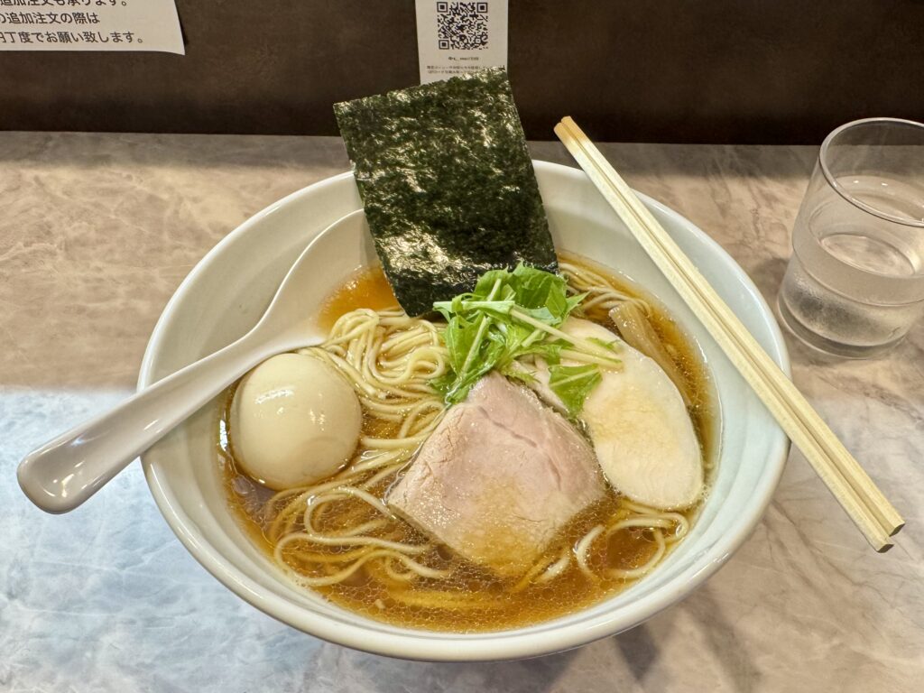 隠居たるもの、出汁の滋養にため息を漏らす。始まったばかりのNHK朝の連続テレビ小説「ばけばけ」、みなさんご覧になっておられるだろうか。宍道湖のしじみが特産である島根県の松江を舞台とするだけあって、少女時代の主人公がしじみの味噌汁を口にするたび食卓で思わず「はぁ〜」と感嘆の声をあげる、そんなシーンが何度も何度も挟み込まれていた。幼い彼女の心持ちが私にはよくわかる。うっかり飲みすぎた翌日、汁物とりわけても肝臓の解毒作用を助けるオルニチンたっぷりのしじみ汁なぞにありついて、身体のすみずみまで沁みわたる滋養に、思わず「はぁ〜」と声を漏らした経験がこれまでに数えきれないほどあるからだ。2025年10月7日の昼、深川の庵の近所、麺響 万蕾のカウンター席に座って醤油ラーメンの汁をひと口すするなり、私はまたしても思わず「はぁ〜」とため息をついていた。この店は化学調味料はいっさい使っておらず、たっぷりの浅利としじみですっきりと出汁をとる。深くさっぱりしたこの出汁、前日の夜に新橋の安居酒屋をハシゴした初老にはたまらないのであった。