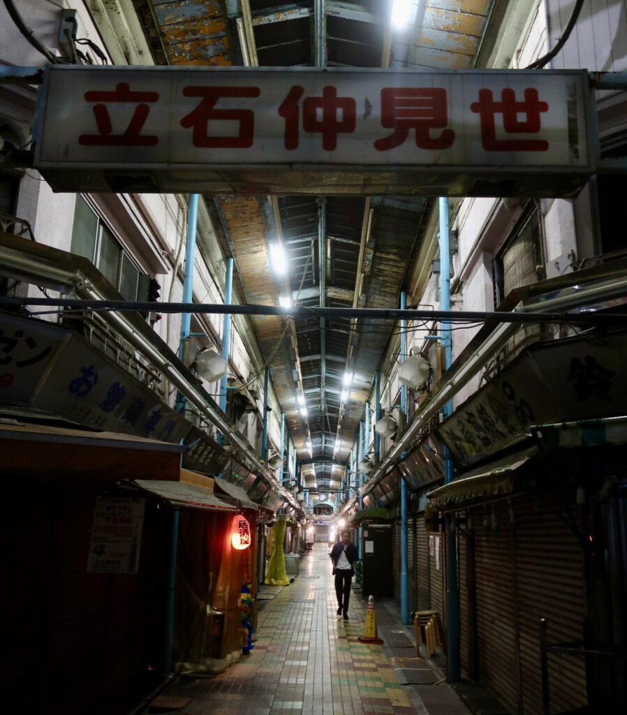 翌日に熊本行きが控えているというのに、私はまたしても飲んでいた。8月初旬にアップした省察で「中高同級生と出向いた浅草の焼肉屋で惹起された一大騒動」について紹介したが、そのとき私の横で白目を剥いて死にかけたあいつが、「お詫びとお礼のためにあらためて一席もうけたい」と恥ずかしそうに残りの4人を呼び出した。「涼しくなったころに」ということで10月9日となり、奴が「主催するからには勝手のわかった地元で」と考えたからか葛飾区は立石で、ということになった。立石といえば「せんべろ(「1,000円でべろべろに酔える」の略称、この価格帯で飲める大衆居酒屋や立ち飲み屋、角打ちなどを指す)」の聖地であったが、今や駅周辺大規模再開発の真っ只中、活況を呈していた立石仲見世の店々もすっかりシャッターを閉めて取り壊しを待っている。友だちが予約した店は「せんべろ」から程遠い以前からある名店で、美味しい肴と珍しい日本酒に興じつつ「だからさ…」なんて説教しているうちすっかり調子に乗ってしまった。しばらくしたら跡形もなくなるアーケードの下、薄い上っ張りを羽織っていい心持ちで私は家路に着いた。