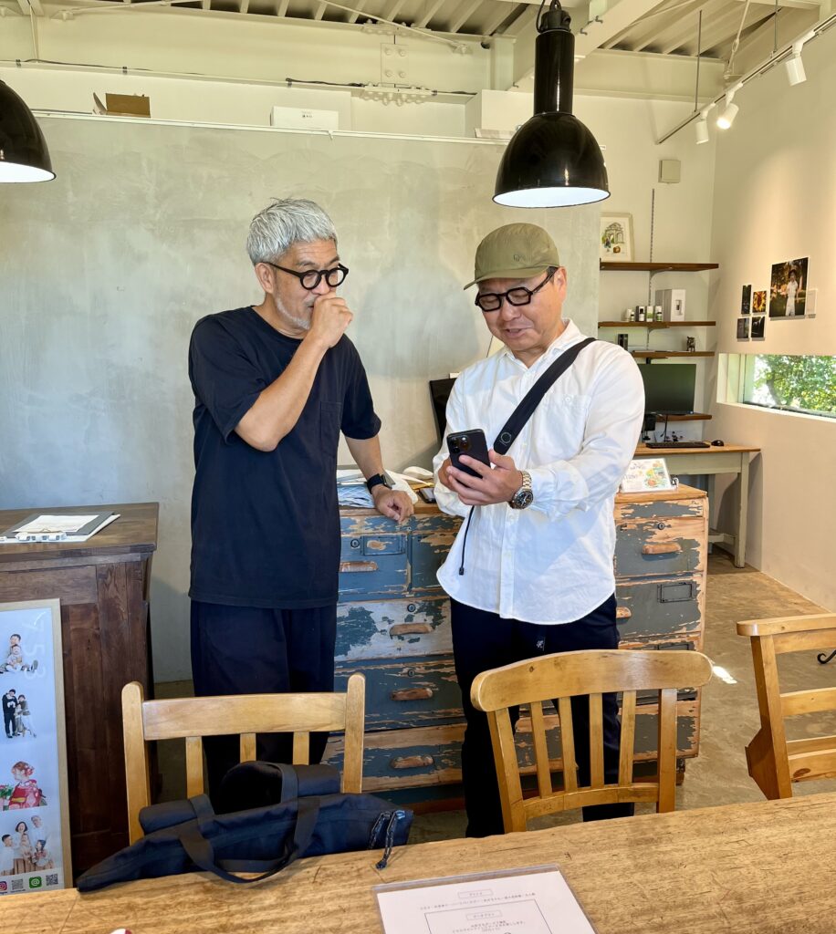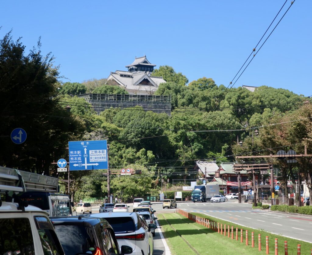隠居たるもの、号令かけた秋の空。何を隠そう号令をかけたのはつれあいである。熊本で暮らす義父母もさすがに寄る年波、とりわけても90歳を超える義父はもはや自由闊達に動けない。また、彼のひ孫のうち年長の一人が先の春に晴れて一年生となったことを皮切りに、順繰り3人がそろって小学生となる一年半後ともなれば、それぞれ習いごとなぞ始めたりしてそれ相応に忙しくもなり、熊本・宇都宮・東京・白馬と各地にばらけて暮らす一族郎党が臨機応変に顔を合わせるのも至難の業、つれあいはそんなこんなを勘案し「今のうちに」と目論んだ。なにも「パーティー開催」などと大それた計画を妄想したわけではない。一族郎党が一堂に会し、そろって写真スタジオに出向き、後々まで残るような記念の写真をプロに撮影してもらおう、ささやかにそう思いついたのである。それならば「すっかり涼しくなる秋に」と日程を決めた。なのに私たちが先乗りして降り立った2025年10月10日、その日の熊本の最高気温は33℃だった。