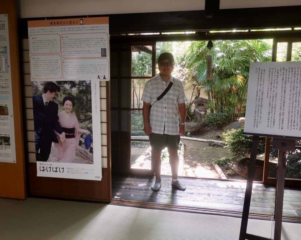 新しく始まったNHK朝ドラ「ばけばけ」、ご覧になっておられるだろうか。我が家では今のところ非常に評価が高い。ハンバートハンバートが「毎日難儀なことばかり」とか「日に日に世界が悪くなる」と歌う主題歌も今日の日常にしっくりきて身に沁みる。ハンバートハンバートのあの夫婦、15年くらい前からしばらく数年だったか、各地の音楽フェスの小さなステージで早い時間帯に20分ほど歌う姿をよく観ていた。だから「とうとう朝ドラ主題歌まで辿り着いたか」と感慨深い。「笑ったり転んだり」と題したあの曲にはそんな年季が入っている。そして熊本でもひっそり「ばけばけ」は盛り上がっている。なぜなら小泉八雲とセツはこの地でも暮らしたからだ。街の中心にデンと鎮座まします鶴屋百貨店という老舗デパートの裏に、ひっそり小泉八雲熊本旧居が今も残されている。せっかくだからと200円の入場料を払って意気揚々見学してみた。朝ドラになって張り切っておられるのか、職員さんが展示パネルともども懇切丁寧に夫婦の来歴を説明してくださる。それはそれで勉強になるのだが、おかげでドラマの行く末までもがすっかりわかってしまう🤣まあ、それもやむなし。さて、市電で家に戻ってまずは義父母を迎える準備にかかろうじゃないか。